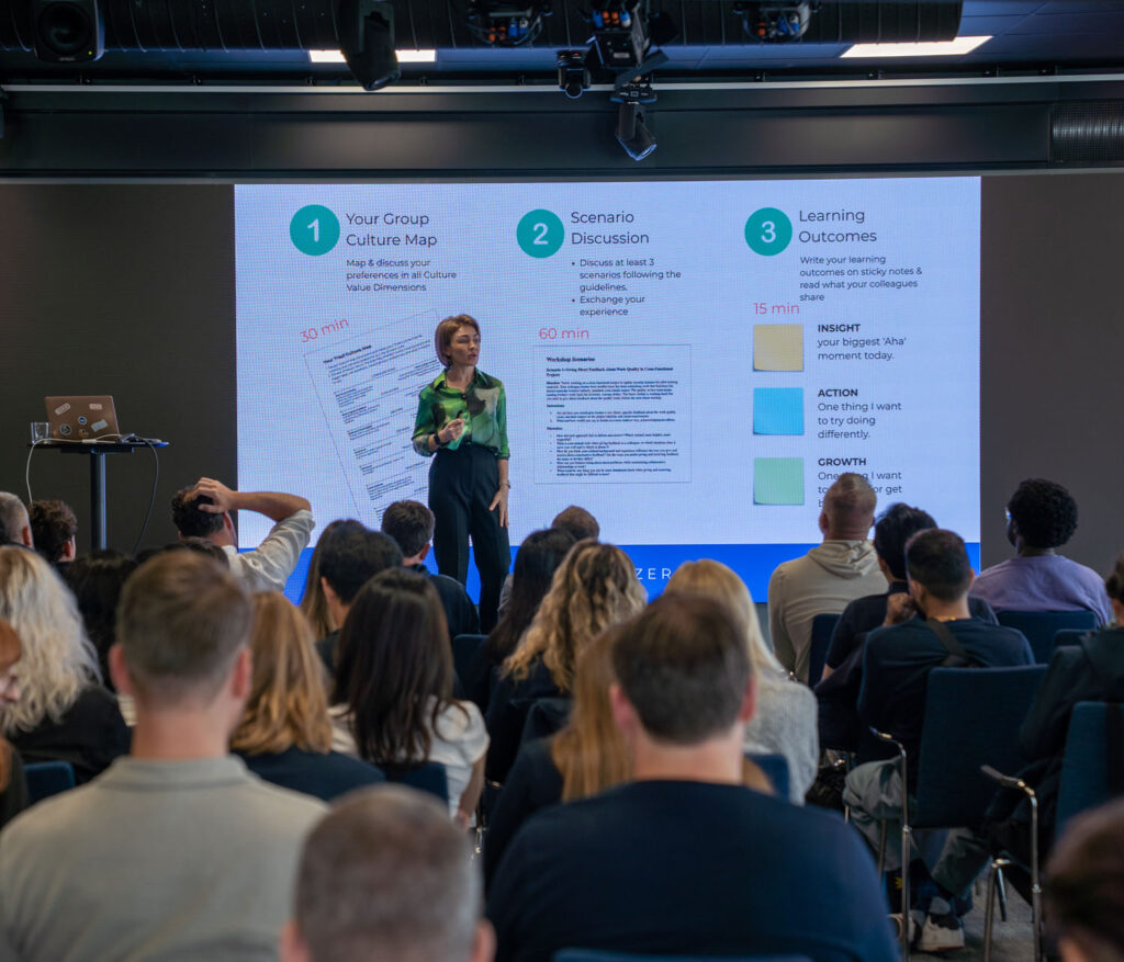 EAVE 2024 Producers Workshop. Ett hundratal personer från 36 länder inom filmvärlden träffades och deltog på olika seminarier inom filmproduktion. Bilden är från Carl Film Forum på Docks med moderatorn Karin Hübinette och filmgeneralen Henrik JP Åkesson Ruben.